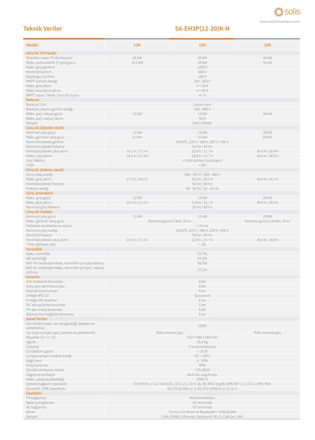 12 KW TRİFAZ HİBRİT İNVERTÖR HV